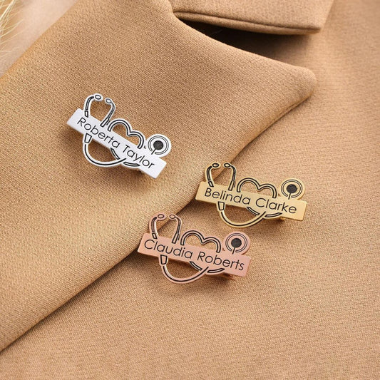 Personalized Heart Stethoscope Brooch - Custom Doctor Brooch Pin