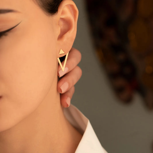 Minimalist Dual Triangle Earrings | Geometric Layered Ear Jacket