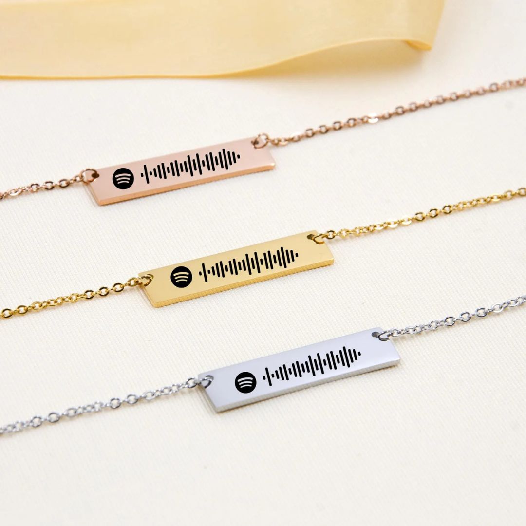 Designed with a sleek, modern pendant, this necklace features precision engraving of your selected Spotify music code – blending minimal style with meaningful personalization. Lightweight, durable, and available in elegant finishes, it's a perfect gift for music lovers and memory keepers alike.